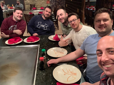 We also had the guys down to Peoria for our semi-annual RP event wherein we reunite the "original" party. We had a blast, and gamed for most of the weekend... though we did take a break to head over to the Hibachi Grill next door!